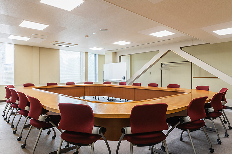 自然換気可能な窓が2ヶ所ある落ち着いた雰囲気の会議室です。Wi-Fi/有線LANもご利用可能で、ハイブリット型の理事会・委員会・会議にもご利用いただいております。